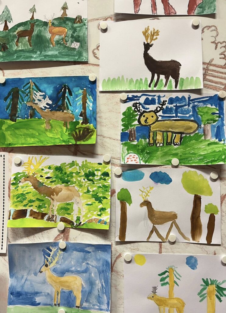 V rámci našeho celoročního projektu Rok s přírodou jsme si tentokrát povídali o králi našich lesů – jelenovi evropském. Žáci se dozvěděli základní informace o jeho vzhledu, velikosti i hmotnosti. Už víme, jaký je rozdíl mezi samcem a samicí, i jak jej rozeznáme od srnce. Zmínili jsme také nějaké zajímavosti, jako např. troubení jelena v říji, jelení sluch a spoustu dalších. Jedno takové jelení troubení jsme si i poslechli. Zpestřením byla ukázka kostí z kostry jelena, které byly nalezeny v lese na Rusavě. Díky tomu jsme si mohli lépe představit stavbu těla tohoto impozantního zvířete. Na závěr si děti jelena nakreslily a vznikla krásná galerie obrázků, která nám nyní zdobí školní družinu.